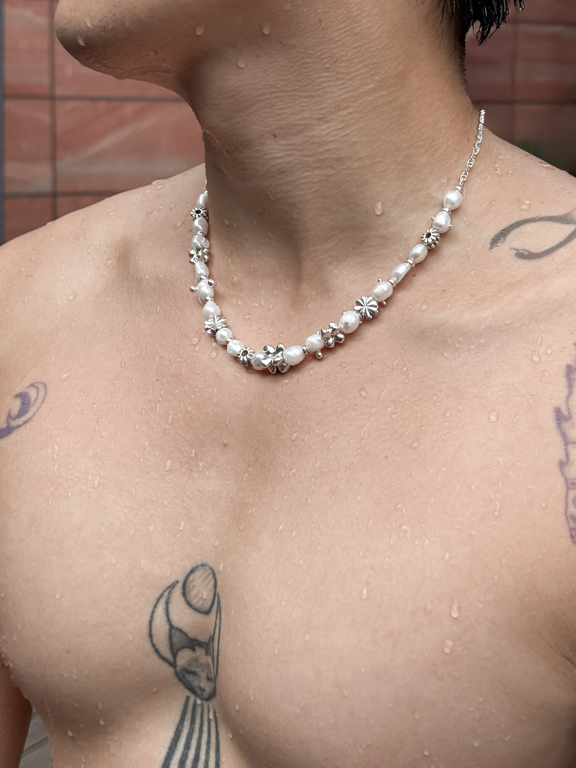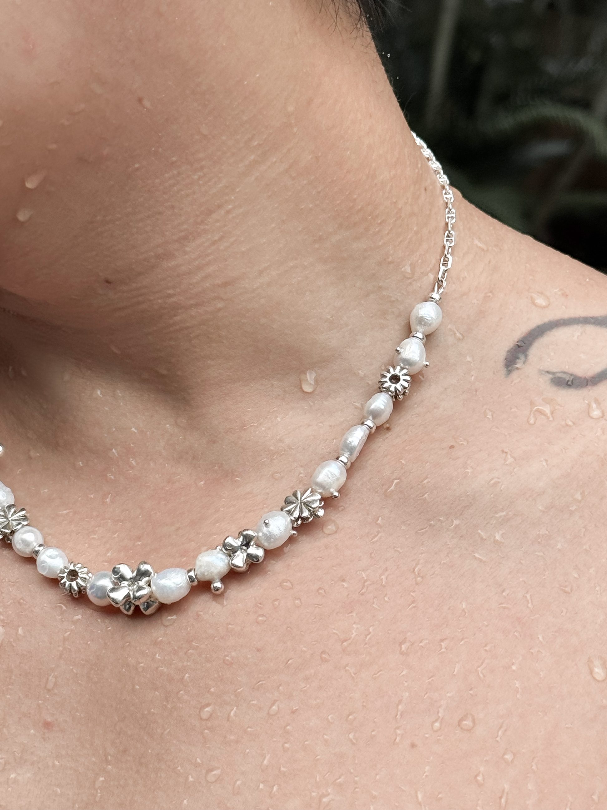 花叢珍珠滴露項鏈